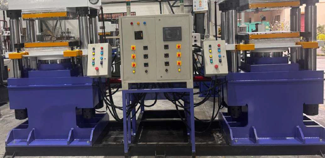 The machine operates fully automatically during processing and is fine-tuned by our team. Only the raw material feeding and product collection are done manually, requiring a minimum of three people per shift. It produces one plate per minute, with a capacity of four plates every four minutes.